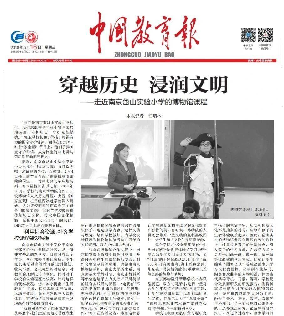 课程有《国家宝藏》《探秘明城墙》《琅琊王》《法老王》《兄弟王》《走进养心殿》等。结合南博博物馆课程开展家国情怀教育和人格修养教育,传承发展中华优秀传统文化,弘扬中华人文精神,引导学生了解中华优秀传统文化的历史渊源、发展脉络、精神内涵,增强文化自觉和文化自信。