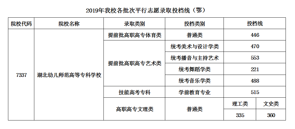 2019年湖北幼儿师范高等专科学校分数线