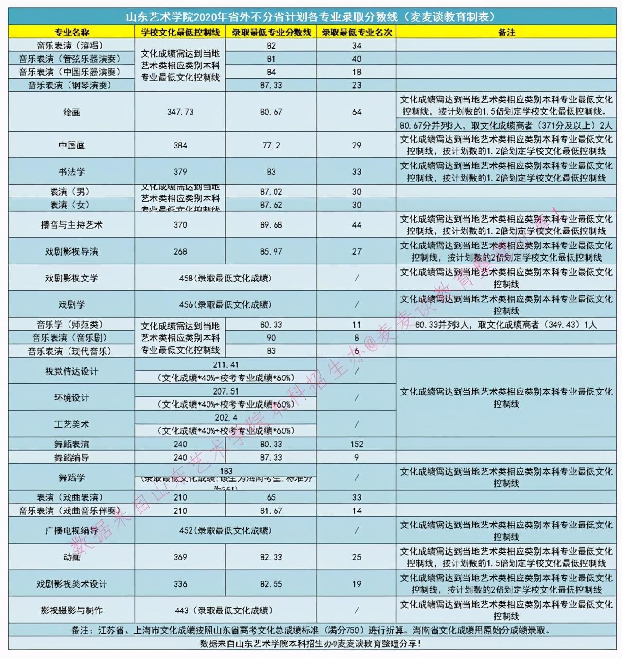 注:文中数据均来自山东艺术学院本科招生办@麦麦谈教育整理,仅供各届艺术生填报资源做数据参考。如有侵权,请联系删除!