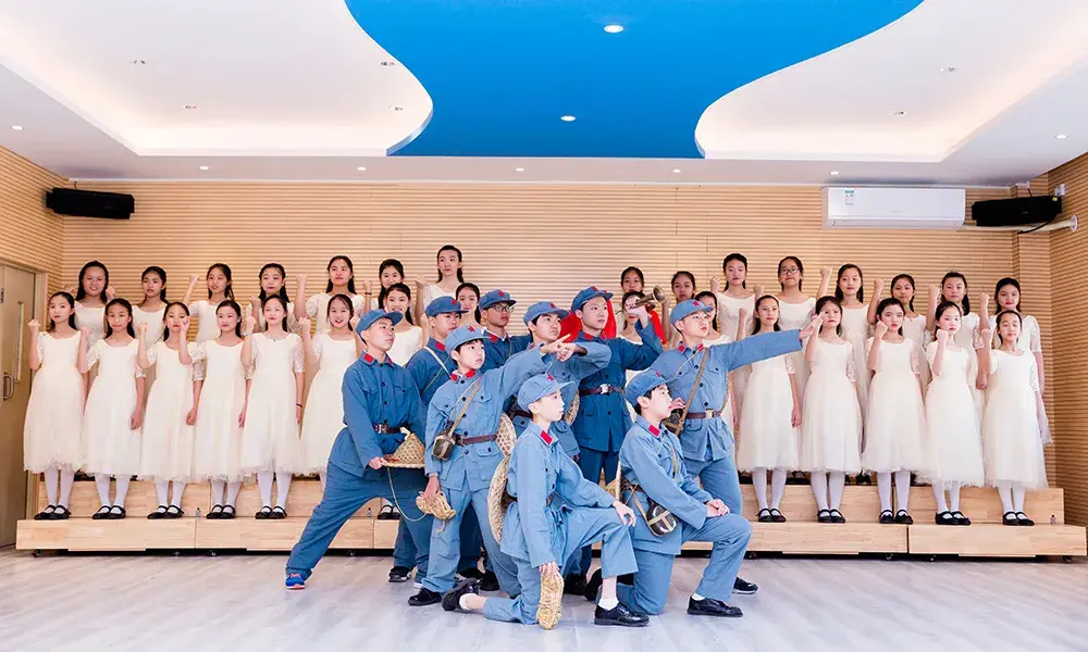 以“两院(少年创新院、少年文学院)、两特色(击剑、游泳)、一课(电影配音课)、一社(书法篆刻社)”特色鲜明。