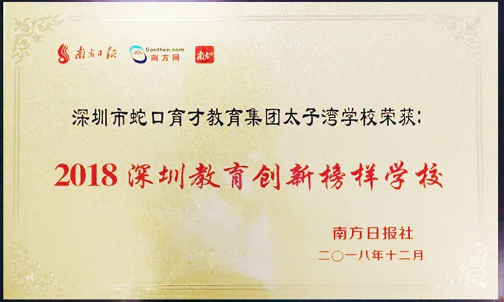 学校荣获“2018深圳最具创新力学校”、“2018深圳教育创新榜样学校”、联合国第八届“和平的旗帜”、“和平橄榄枝”勋章、“百佳市民满意项目”等荣誉,学校美誉度日渐提升。