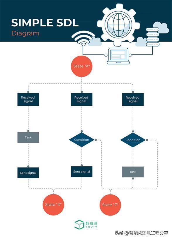 SDL 代表规范和描述语言,它使用图形元素设计面向对象的图表,用于对通信、航空、医疗和汽车行业的状态机进行建模。