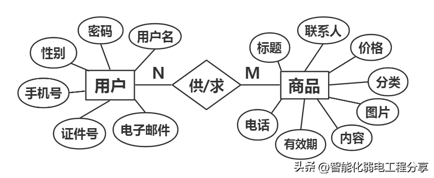 绘制实体关系图实体(方框表示),联系(菱形表示),属性(椭圆表示),联系(直线表示)