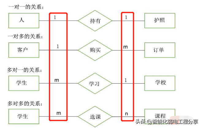世界上任何事物都不是孤立存在的,事物内部和事物之间都有联系的,实体之间的联系通常有3种类型:一对一联系,一对多联系,多对多, 多对一联系。