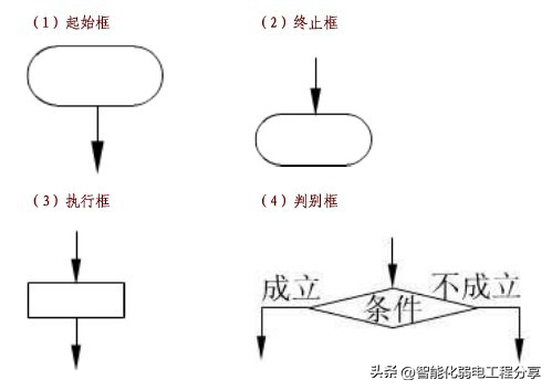程序流程图与普通流程图的基本图形相似,通常由起止框、处理框、流程线、判断框、输出输入框构成。