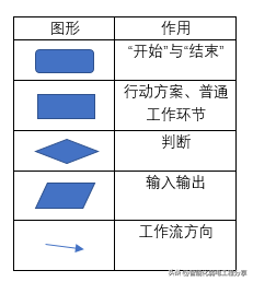 上图中我们可以很清楚地看出流程图有一套标准的符号,每个符号代表的意义不相同: