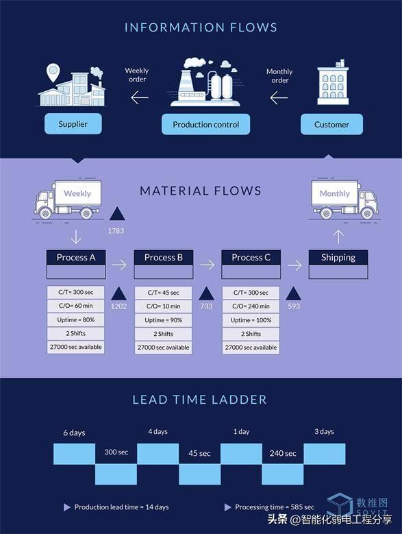 价值流程图是一种流程图,用于说明和分析生产或交付过程中涉及的步骤。其主要目标是识别和消除价值流中的浪费,提高给定价值流的效率。 由于它是一种可视化精益方法的关键目标的强大方式,许多行业,包括产品开发、软件开发、制造、医疗保健和许多其他行业,都在使用它。