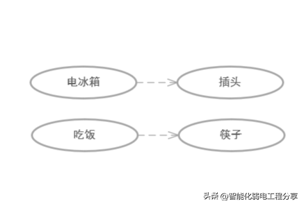 依赖关系(Dependency)——用带箭头的虚线表示,表示源用例依赖于目标用例。