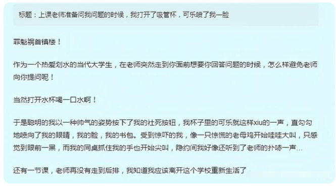 这名同学表示自己应该换个学校学习了,这下就可以彻底避免老师提问,还能让自己忘掉这次事件带给自己的屈辱。