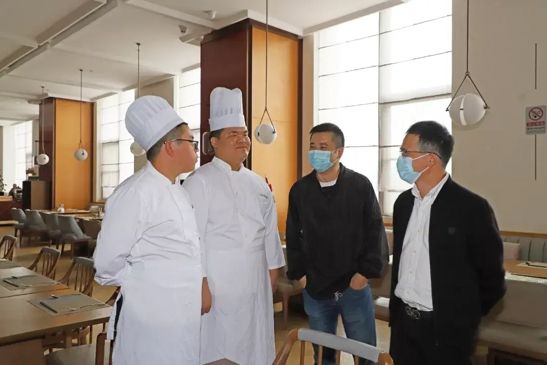 走访第四站,云轩楼酒店。在走访期间,酒店负责人对学校实习生任劳任怨、认真负责的职业操守表达了认可。实习以来,学生们克服了种种困难,锻炼了操作技能,提升了职业素养。同时,学生们也表达了对学校领导、老师到访的感谢,畅谈自己实习情况,并表示会继续努力,对未来充满信心。