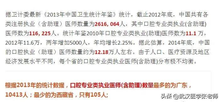 据国家卫生统计,全国口腔执业医师资格证(含助理医师)注册人数共12.18万,广东省有10413注册,同期江西省只有1813人注册在籍。