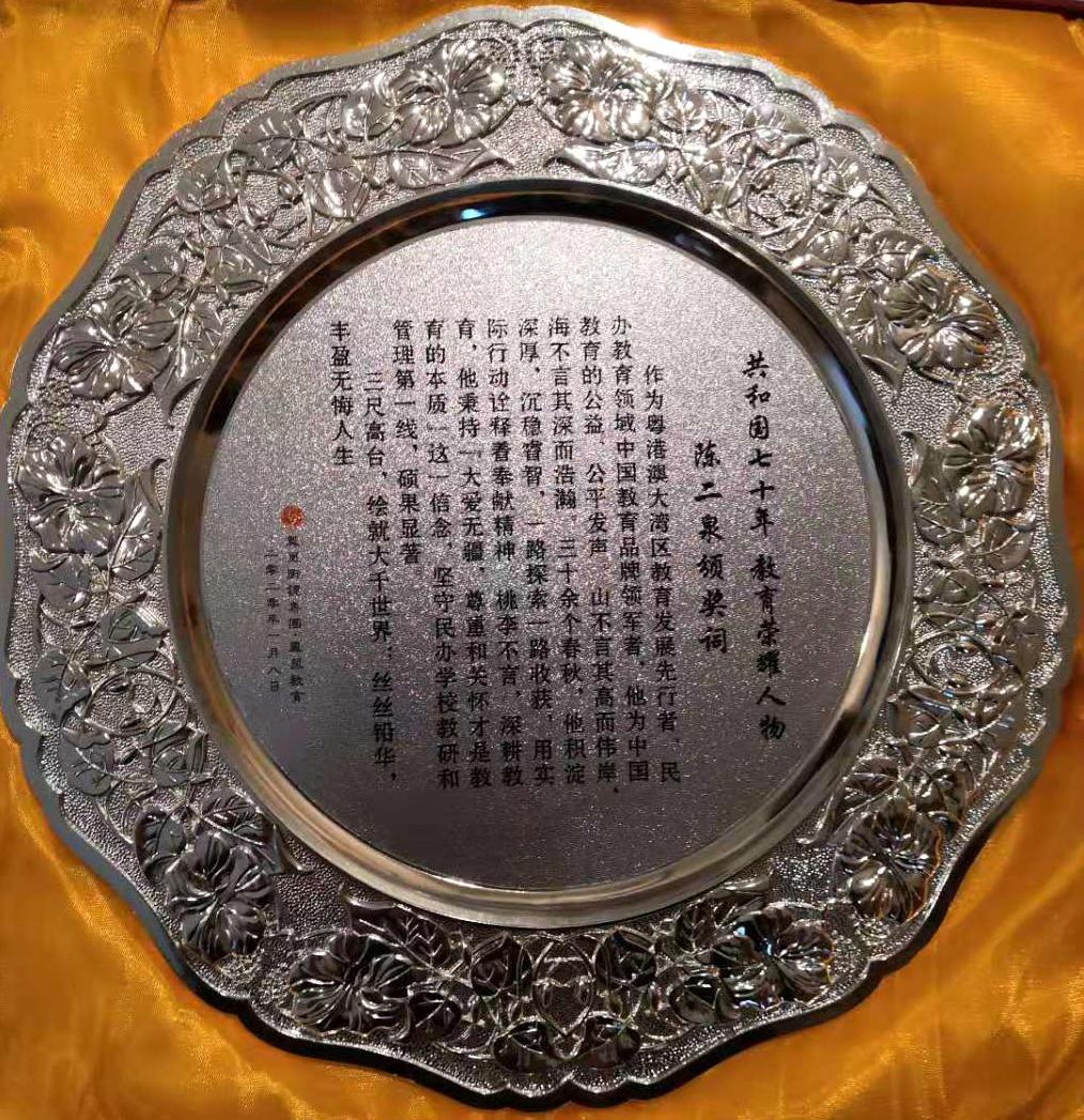 2019年国庆前夕,为表彰一批对共和国有突出贡献者,授予于漪(女)、卫兴华、高铭暄人民教育家国家荣誉称号。2020年1月8日,由凤凰卫视和中国侨联指导,凤凰教育和中国华侨公益基金会共同主办的2019-2020华人教育家大会在北京凤凰中心隆重举行。大会以“作育英才 智享未来”为主题,致敬共和国成立七十周年,本次大会邀请了教育名家、优秀学者、优秀教育机构领导者、媒体人等齐聚一堂,汇聚当代教育英才,与全球一起见证新中国教育成就,感受70年发展带来的教育巨变,展望未来教育的走向。会上隆重表彰了“共和国七十周年华人教育名家”和“共和国七十周年教育荣耀人物”。湾区(广东)教育研究院、北京京师时代教科院陈二泉院长以其丰硕的成果被推举为“共和国七十周年荣耀人物”称号,众望所归。