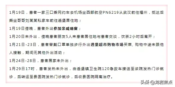 1月26日,患者夫妻及其儿子乘坐公交至信阳站,后乘坐高铁从信阳返回福州,后乘坐丈夫私车回到连江住处;