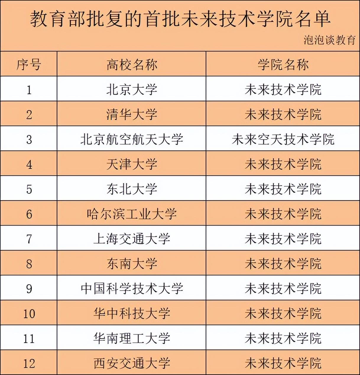 作为新工科领域的“未来技术学院”,首批批复确定的11所高校均是在工科领域实力突出的高校。
