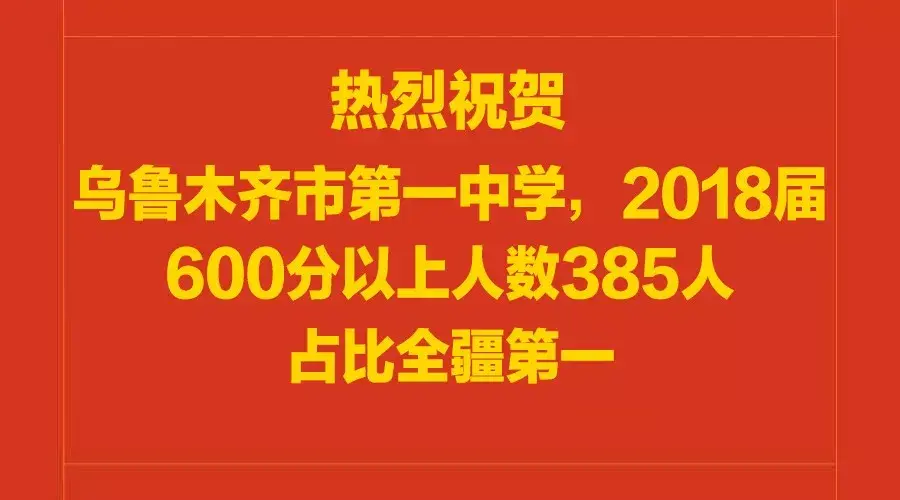 2018届高考一中600分以上共385人,占比全疆第一。理科600分以上人数占一中理科毕业生总人数54%。