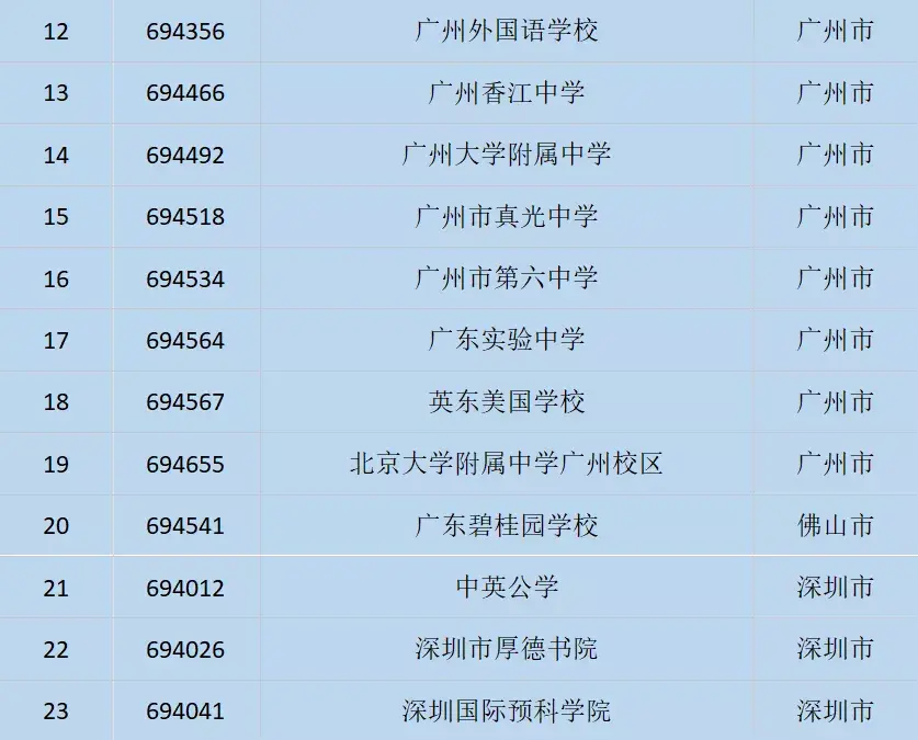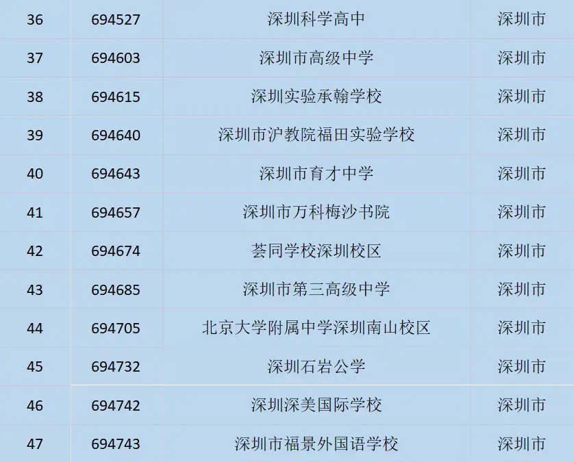 以下是2022年能参加AP考试的广深地区最新通过College Board认证的AP学校列表,共47所,其中广佛20所,深圳27所。