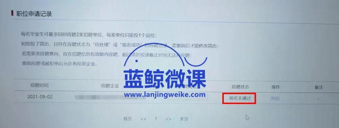 投简历后应聘状态由“待处理”变为“报名成功”,即为有效应聘;如应聘状态变为“报名未通过”就是无效应聘,说明不符合基本应聘条件。