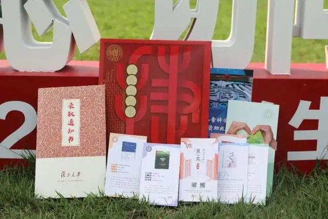 复旦大学本科录取通知书封套由复旦大学中文系九四级中国文学专业李德刚校友设计,以“捷报”二字、璀璨之星作为主设计元素。“捷报”二字用在封面上意在恭贺收到复旦录取通知书的学子,在2022高考这个“战场”上捷报已至,作为佼佼者荣登复旦日月光华的殿堂。