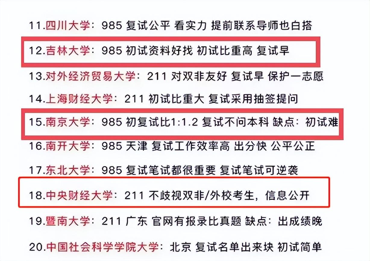 都是不歧视双非的考研院校,考研学生如果选择了这些院校,同等条件下,上岸的机会会大很多,也就更容易顺利上岸。而不是辛苦努力很久,最后因为本科院校的缘故被淘汰。