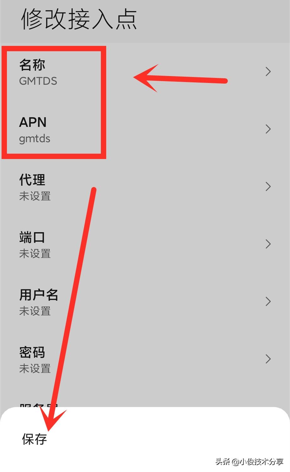 然后就会弹出【APN】修改页面,在这里我们把名称设置为【GMTDS】,APN设置为【gmtds】