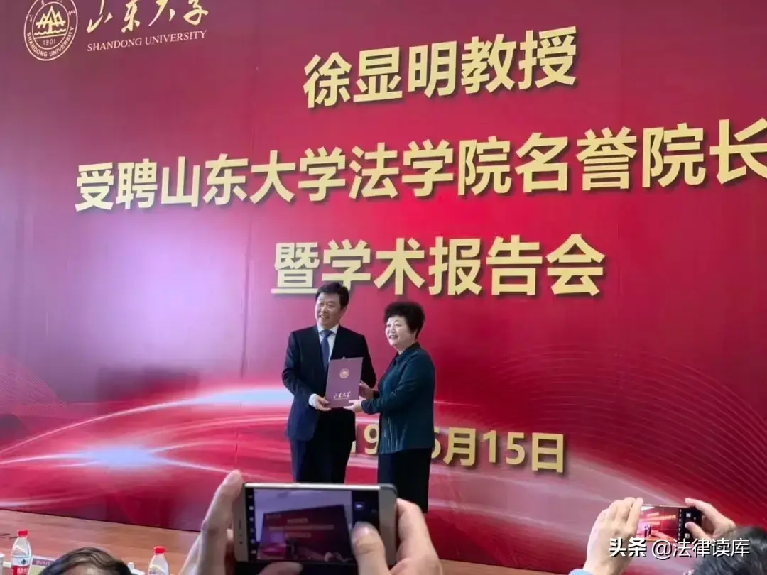 6月15日,全国人大监察和司法委员会副主任委员、山东大学原校长徐显明教授来到山东大学青岛校区,受聘山东大学法学院名誉院长,并为青岛校区师生做了学术讲座。此时,距离2013年10月22日他离任山大校长已有6年4个月。