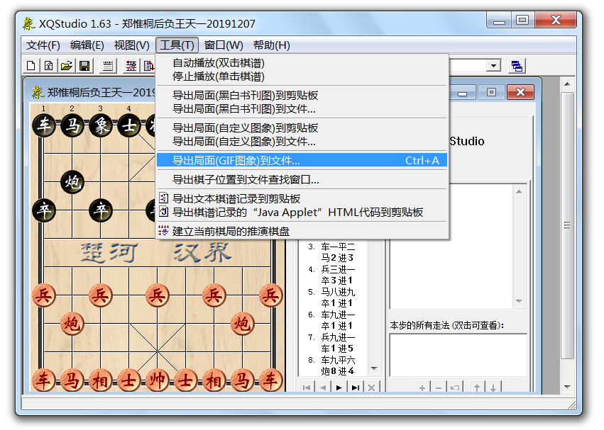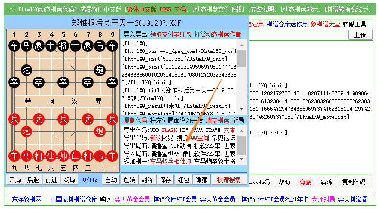 也可以在东萍象棋网中搜索棋谱,然后导出GIF文件。