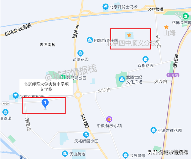 北师大附属实验中学顺义学校附近别墅居多,而四中顺分周边则以普通商品房小区居多。如果这两所学校按就近原则划片,那后沙峪东部的小区就与北师大附属实验中学顺义学校无缘了。