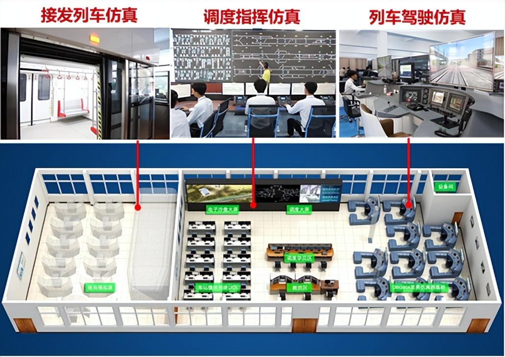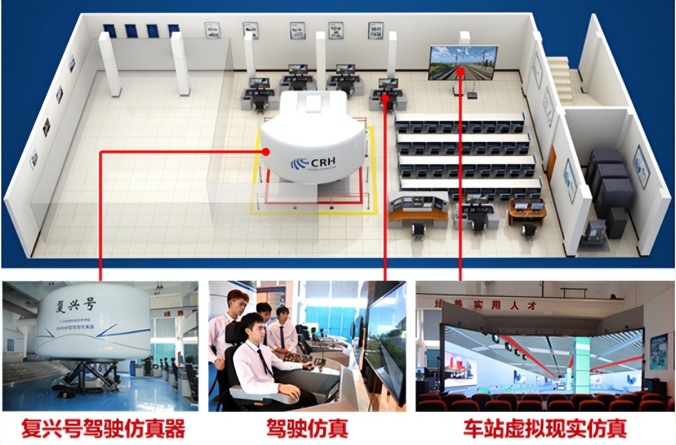 通过实施国家“双高”建设计划,投入5800万元建成了具有国际先进水平的轨道交通综合仿真实训基地,具有列车驾驶、行车调度和车站作业3大模块,具备CR400AF高速动车组、CRH6A城际动车组、HXD1C电力机车、地铁B型客车全系列模拟驾驶功能,能实现调度指挥下的列车驾驶作业与车站作业联合运行。