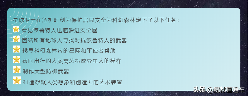 星球卫士在危机时刻为保护居民安全为科幻森林定下了以下任务: