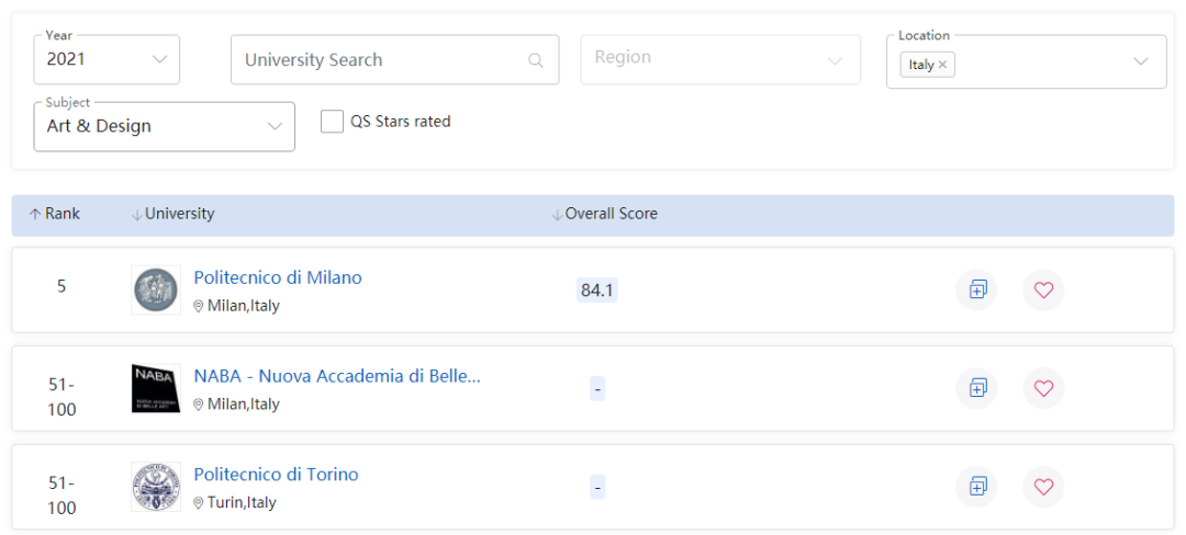 意大利唯一一所同时受意大利和中国教育部认可学历的高等私立院校。是在2021年版的QS世界大学艺术与设计排行榜中,意大利唯三进入世界top100的院校,也是意大利排名第一的美术学院。