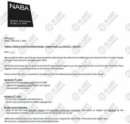 就聊到这里,有对NABA感兴趣也想要这样一张offer↓,或想去意大利留学的同学还有其他问题可以私聊~