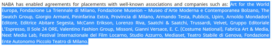 学校的career service给出的部分与NABA签了就业合作的企业/部门