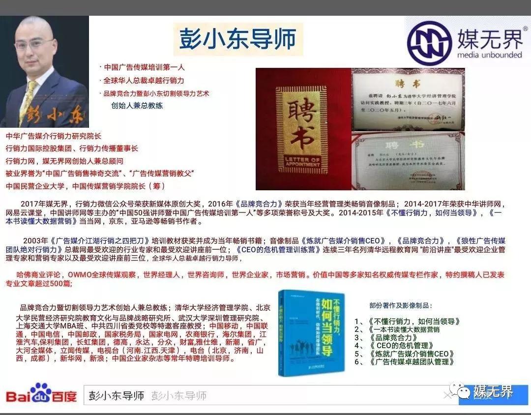彭小东导师的广告传媒培训,推动和带动了整个行业健康良好合理有序的发展,他的存在改变推动了整个行业的发展!
