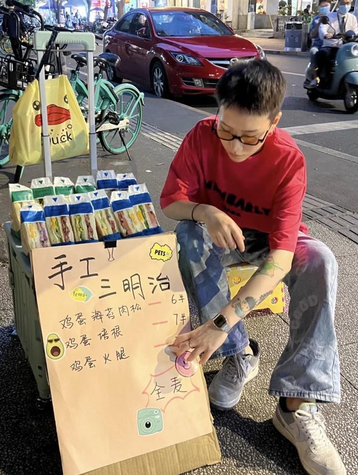 成都的小得,今年 3 月从教培行业裸辞,没有想好转行要做什么,决定多尝试没接触过的事物,4 月底开始摆摊卖三明治。开张第一天,小得 5 点就起床了。