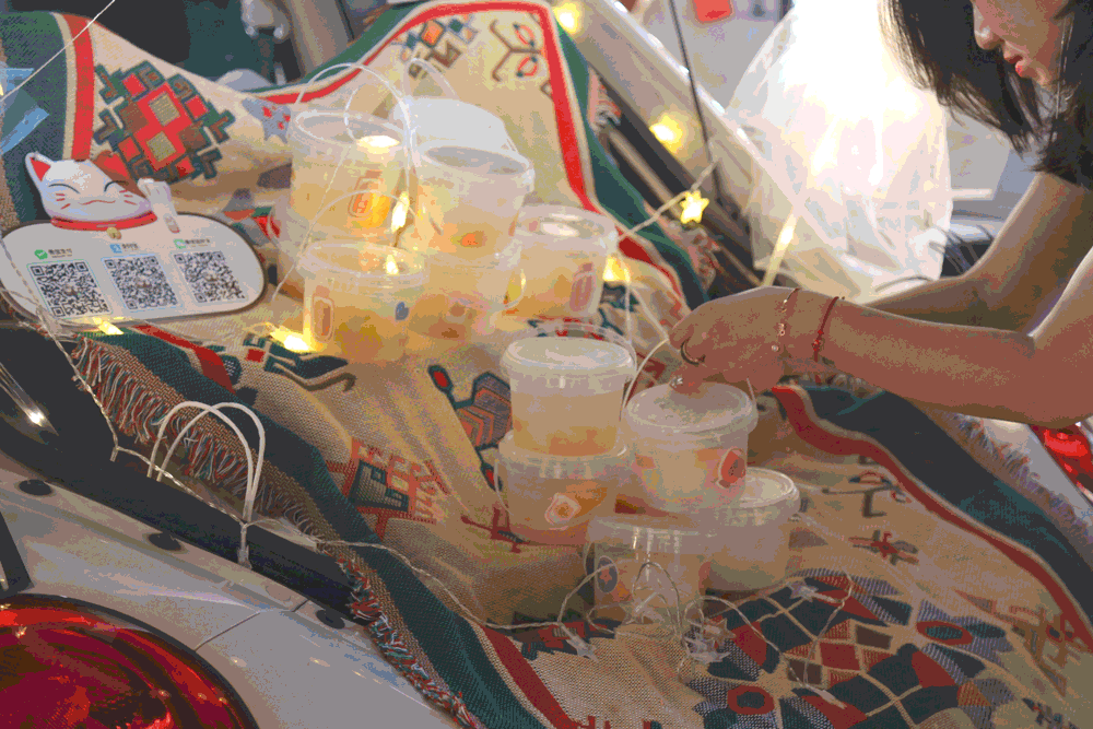 而对于后备箱摆摊的麦兜,赚钱在第一顺位。她白天有工作,摆摊牺牲了睡眠时间,每天两点睡七点起,「赚的是辛苦钱」。