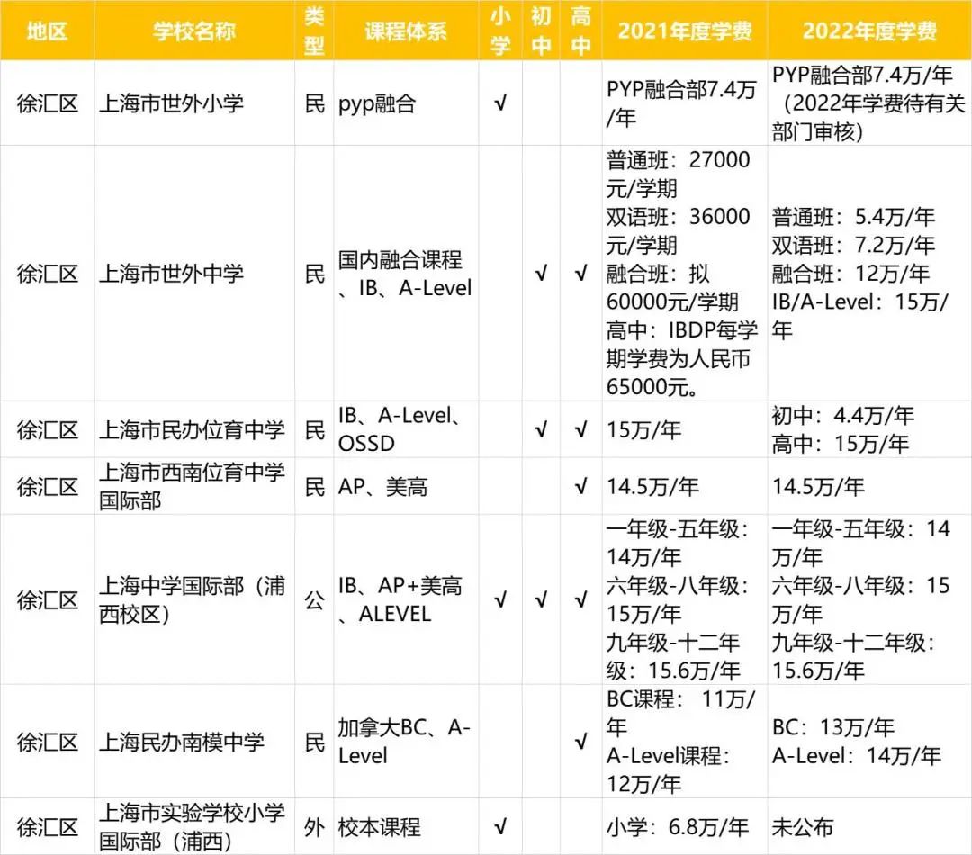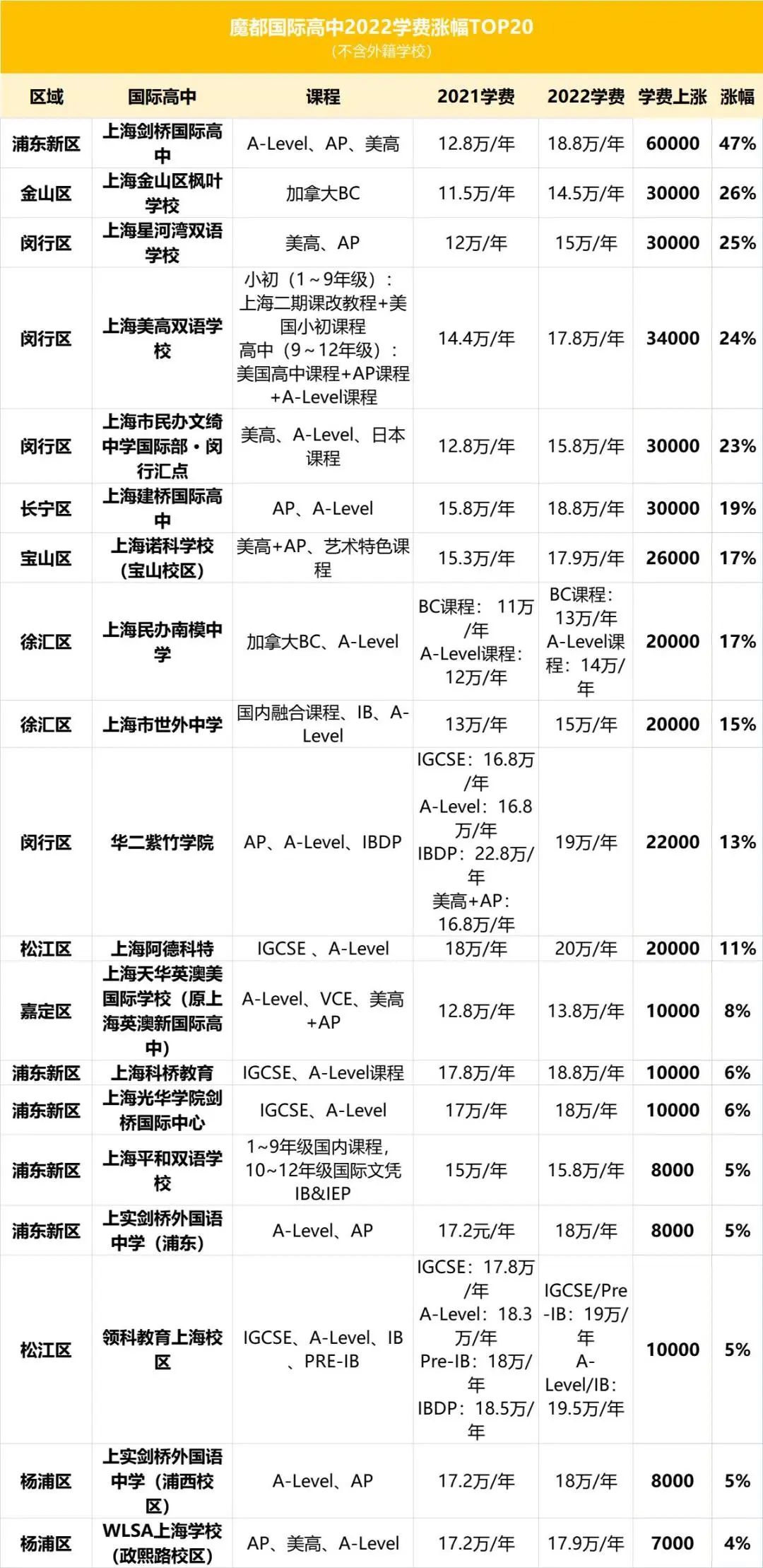 高中阶段:上海最热门的国际双语学校世外一向是沪上家长关注的焦点,2022年学费也“不负众望”继续攀升,上涨2万元,涨幅15%。
