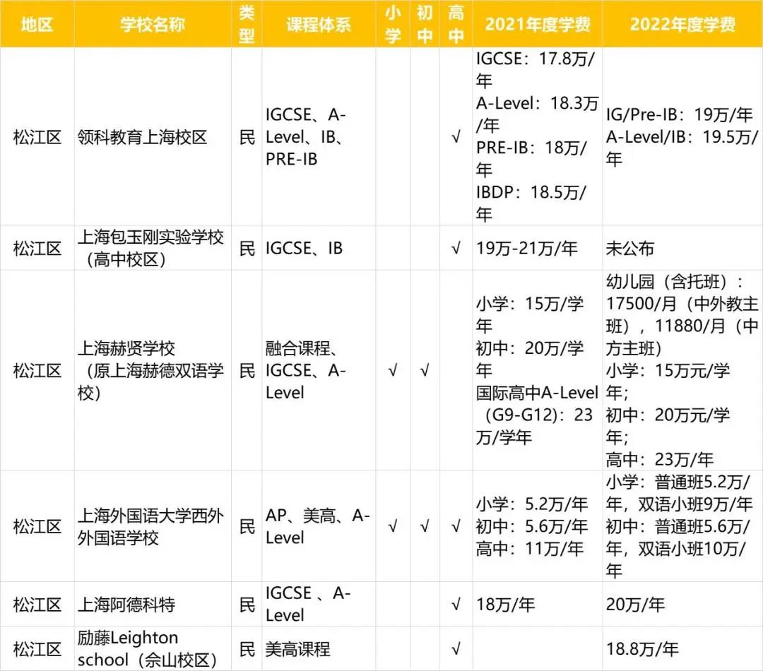 高中阶段:松江区的阿德科特今年学费上涨2万,首次迈入20万大关,涨幅达到11%。作为牛剑收割机的领科上海校区,IBDP和A-Level课程学费均从18万多上涨到19.5万,上涨1-1.2万,涨幅5%。