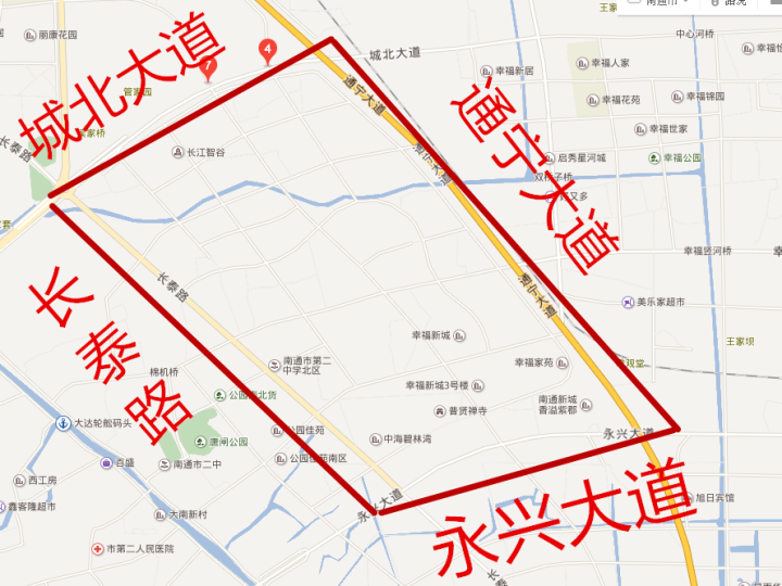 该区域原属南通市第二初级中学和港闸区实验小学代招生范围,自本公告实施起两校停止该区域范围代招工作(非起始年级除外)。