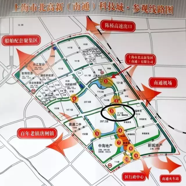 启秀市北学校位于港闸区上海市北高新(南通)科技城内幸余路南、集贤路东。(下图黑圈处标注位置☟)
