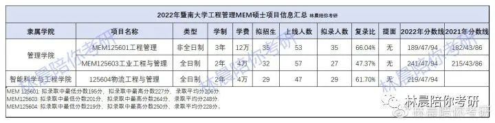 2022年暨南大学工程管理MEM硕士拟录取信息分析