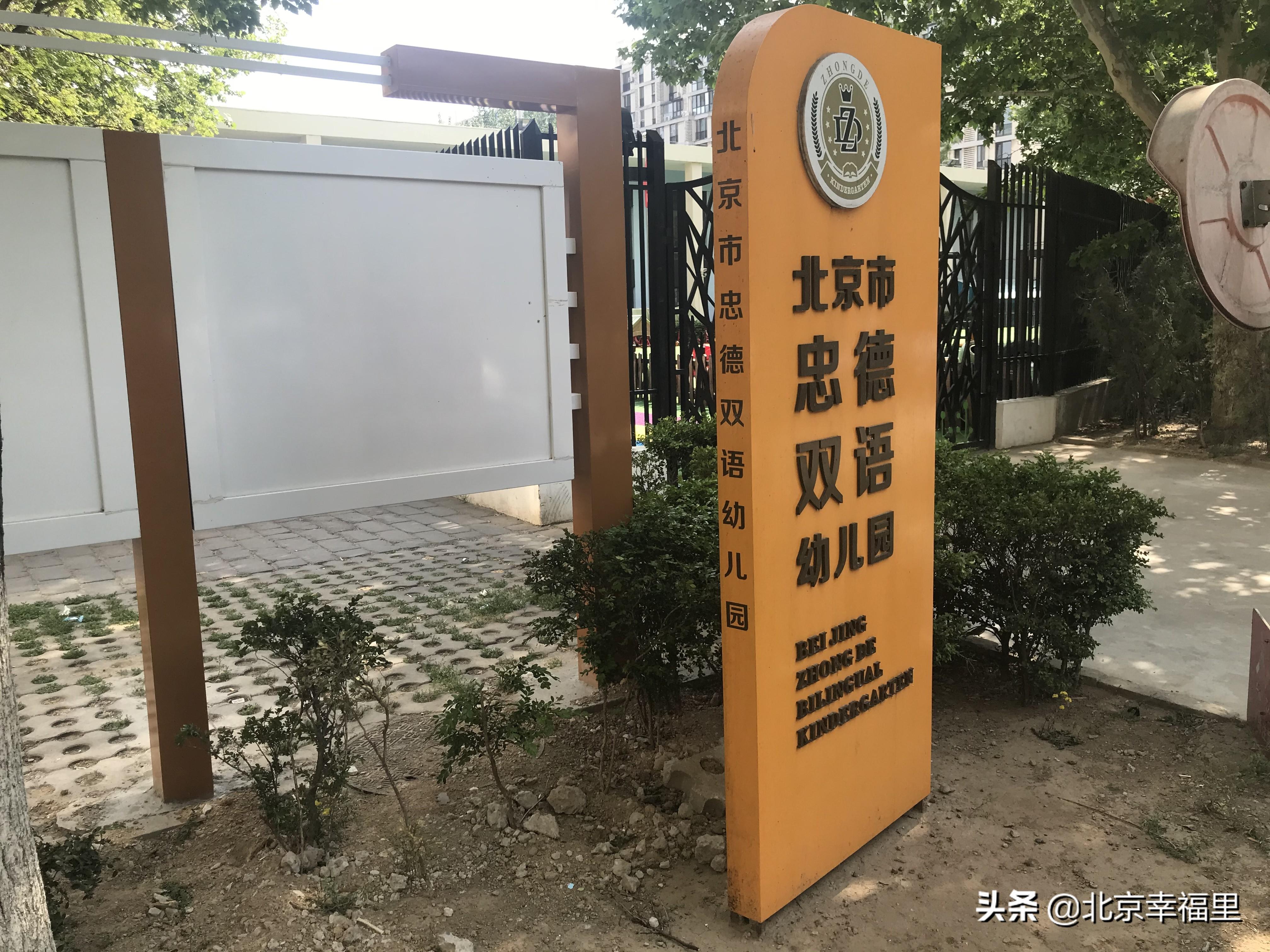 而且最主要的是,小区内部还有一个占地面积很大的北京市忠德双语幼儿园,从张贴的园所介绍能看到,幼儿园光户外活动场地面积就近2000平米,从园区外能看到很长的软垫彩虹跑道,还有各种玩耍设施。单说幼儿园这项,就能给住在这里的家长省很多事。