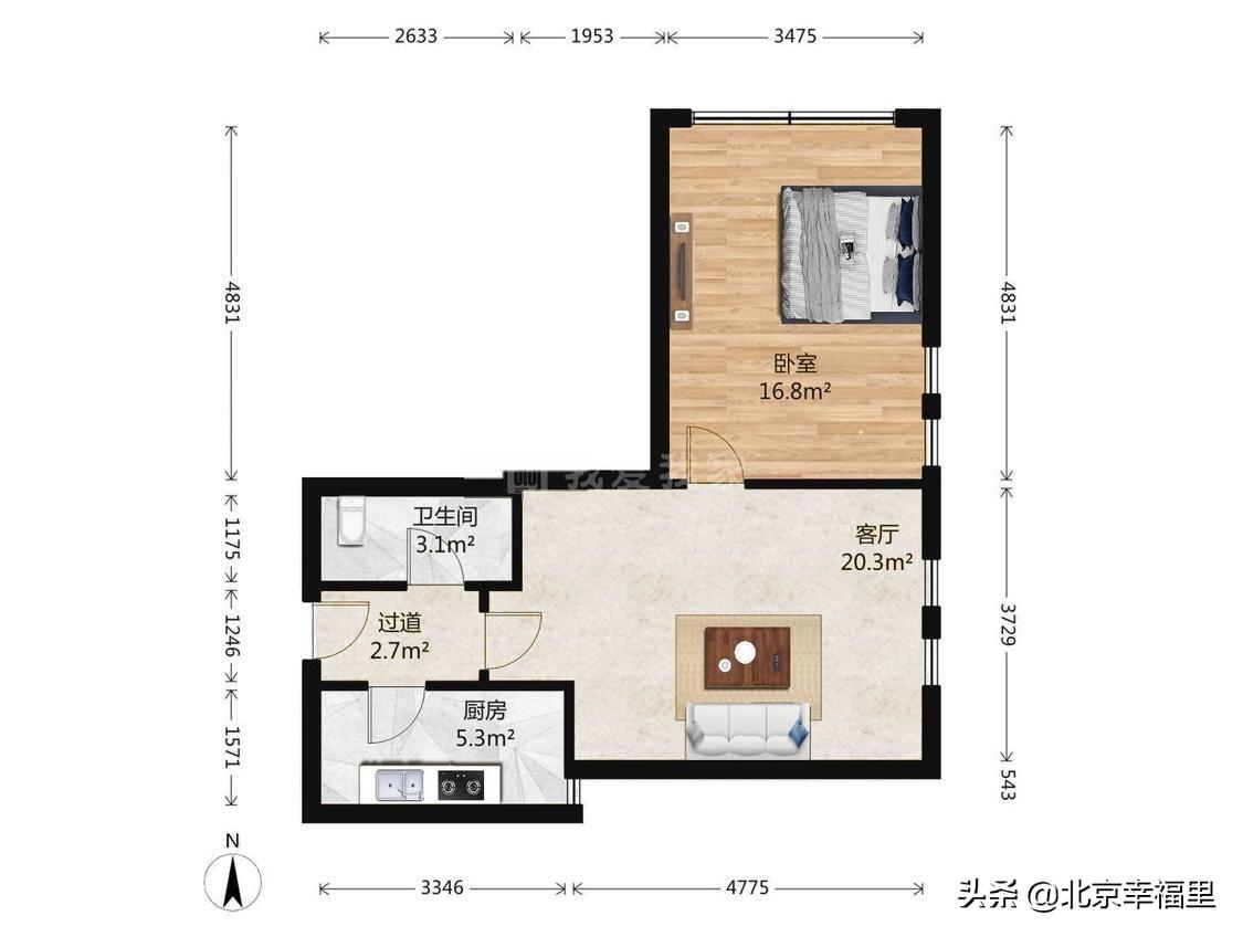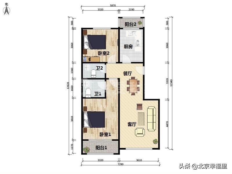 卧室朝北,客厅窗户朝东,光照较差过道空间面积浪费户型面积:103.26㎡两居