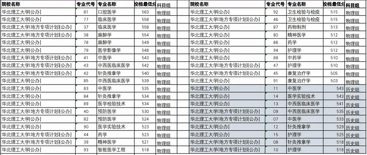 相对于医科类专业来说,很多中医类专业历史组考生也是可以报考的,所以河北中医学院不少专业在物理组、历史组都有招生。