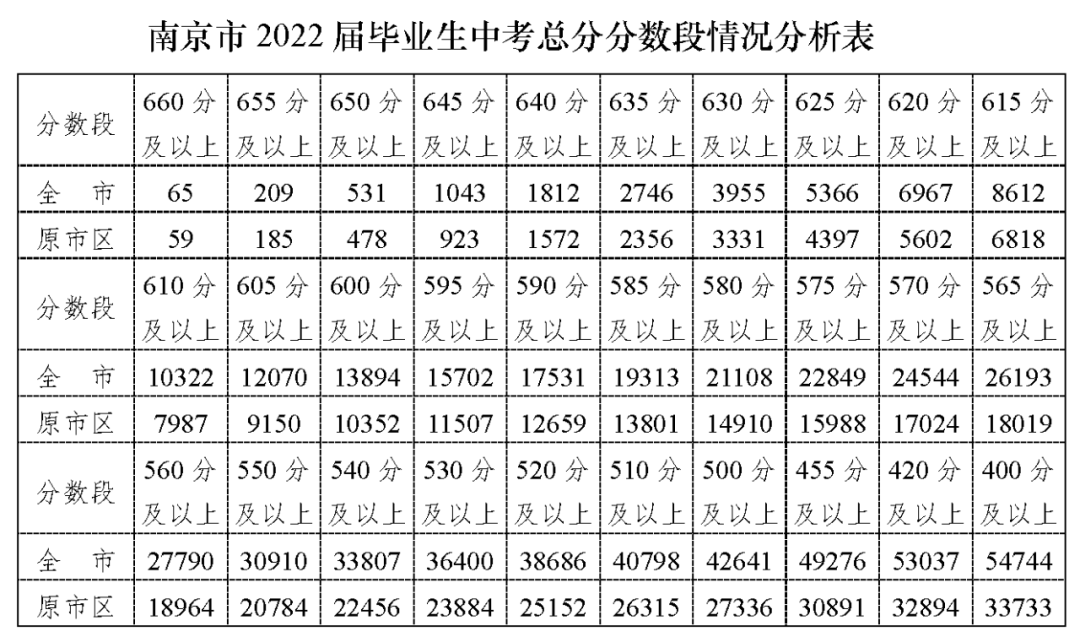 和整个南京的中考分数段公布数据相比,我们会发现,如果娃儿在以上四个区域上学,如果想考出高分段,就会显得更难了。