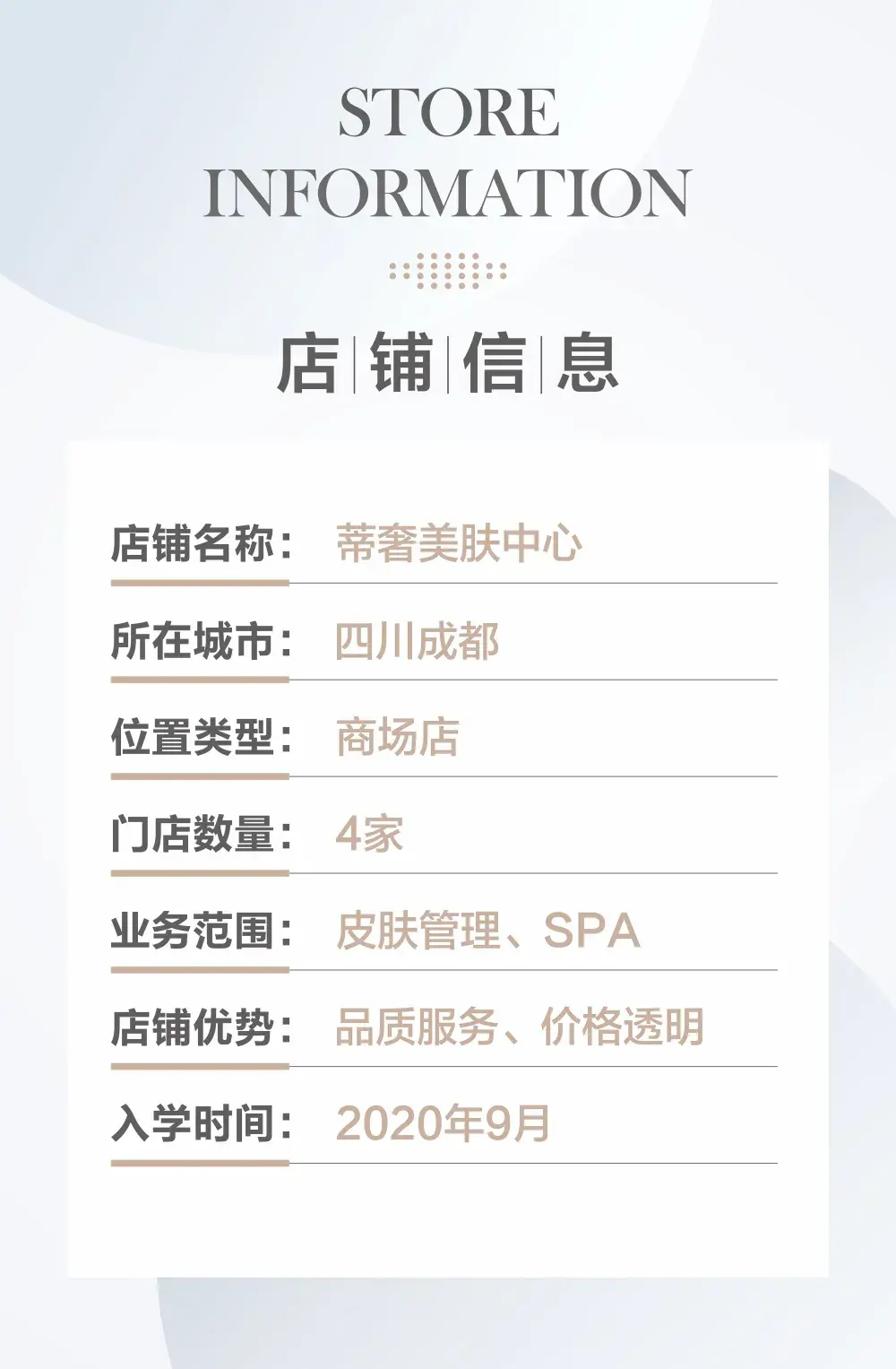 2年前,她从建筑类转行到美业,凭借敏锐的观察力、对美的鉴赏力和在华盛美业持续的学习力,门店从1家发展到4家,单店业绩从每月8万增长到32万,团队平均工资从3000元增长到8000元。本期《美业面对面》专访,走进四川成都蒂奢美肤中心创始人—刘雨桐,一起来听听她的创业故事。