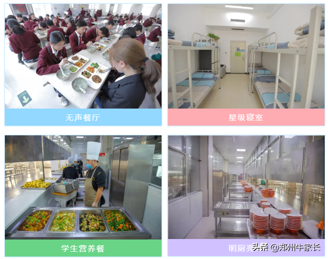 宿舍每间6人,有独立卫生间和阳台、中央空调新风系统,全天候热水供应,有专职的生活老师和校医为学生的校园生活保驾护航。食堂为省一级甲等食堂,可满足全校师生同时就餐,饭菜质量严格执行国家安全标准,专业营养师按照中学生成长营养需要,实行科学营养配餐制度。