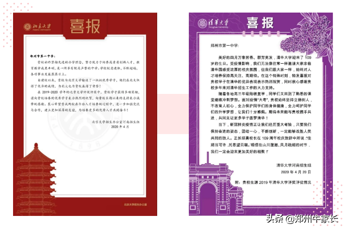 (郑州一中的箐箐校园、红色录取通知书▲)