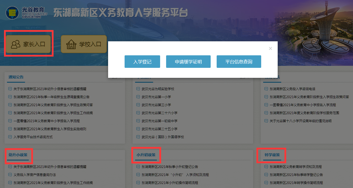 东湖高新区义务教育入学服务平台