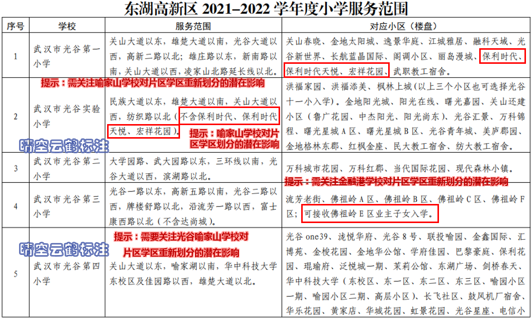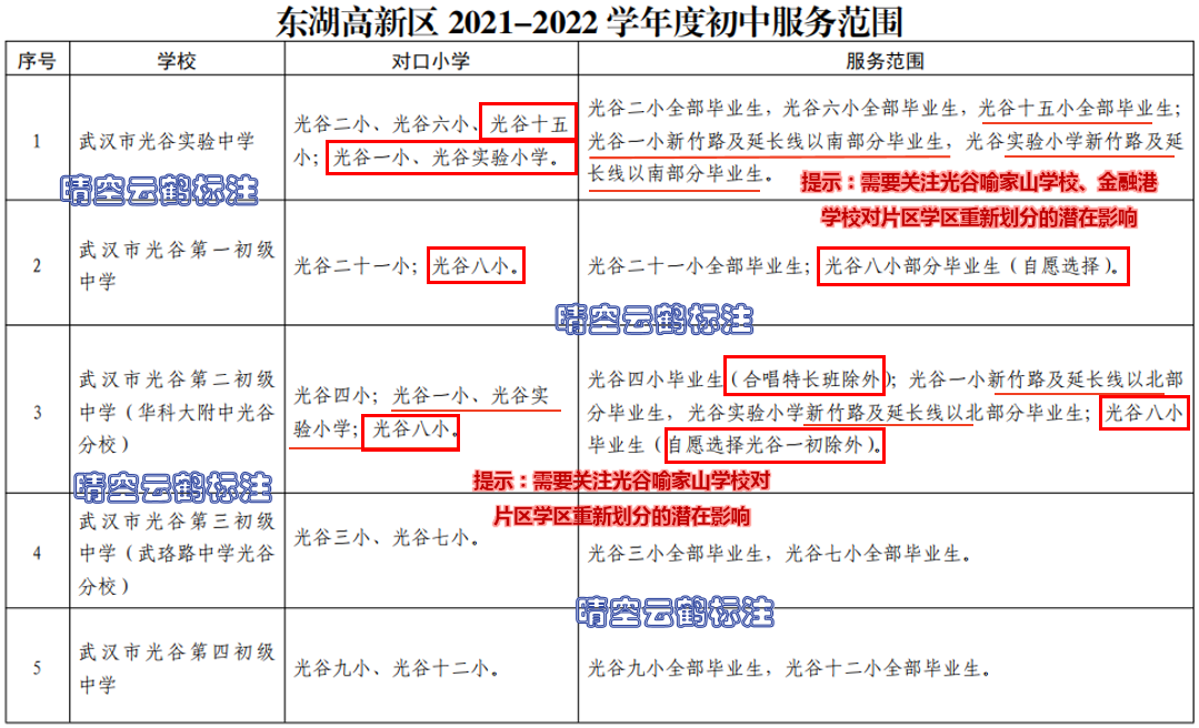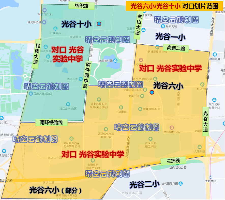 【前言】:本文是武汉各城区学区系列第36篇。应一些读者朋友的要求,重点将重点介绍东湖高新区(光谷)的幼升小、小升初对口划片范围,晴空云鹤尝试将图表和地图标注两种方法结合,与前面的2篇文章相比,本文的文字量不多,以图表为主,以便让读者朋友看起来更加直观。