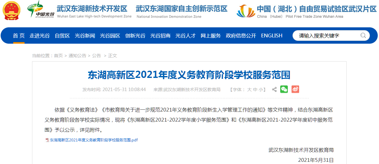 东湖高新区2021年义务教育学校服务范围